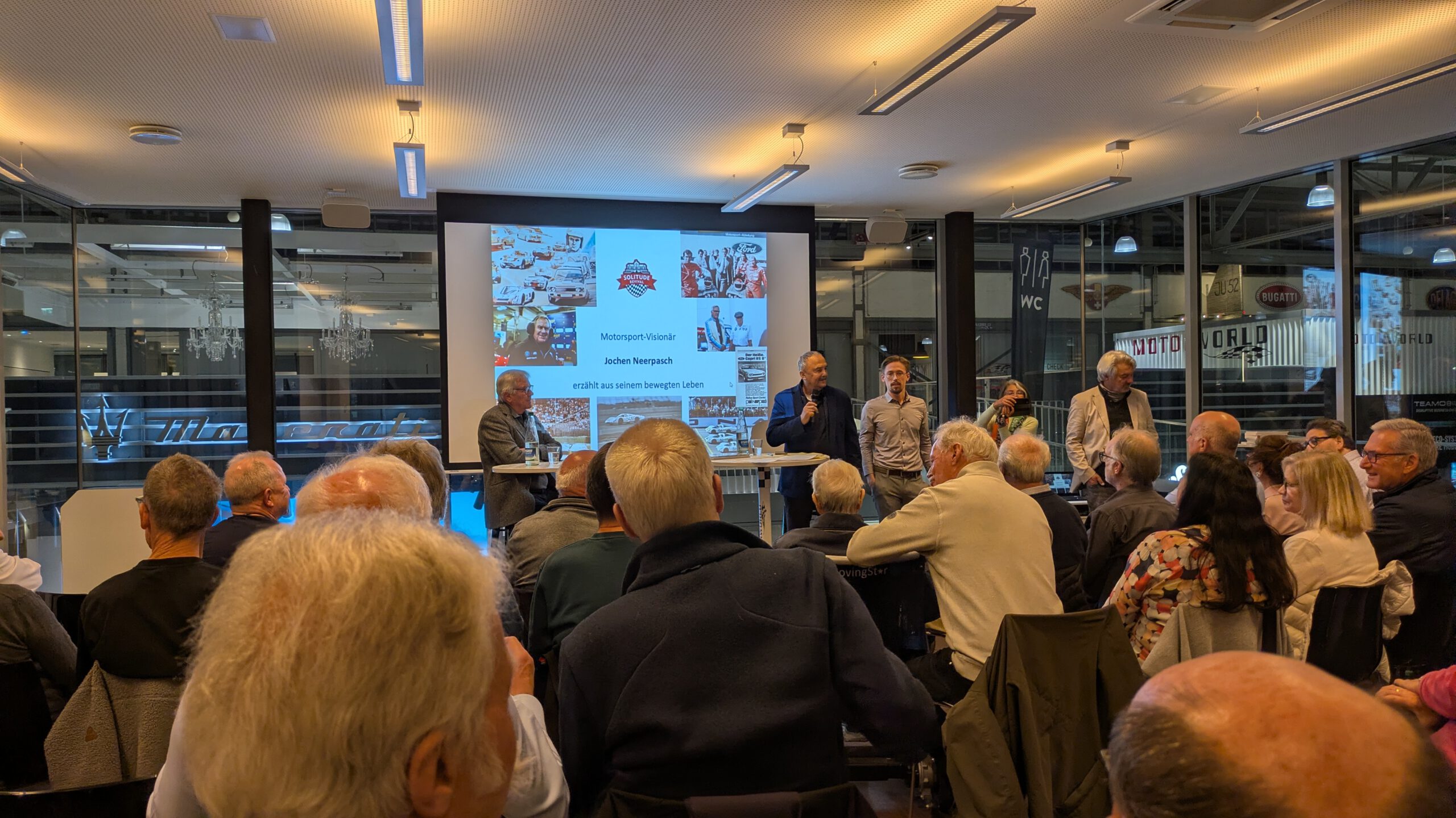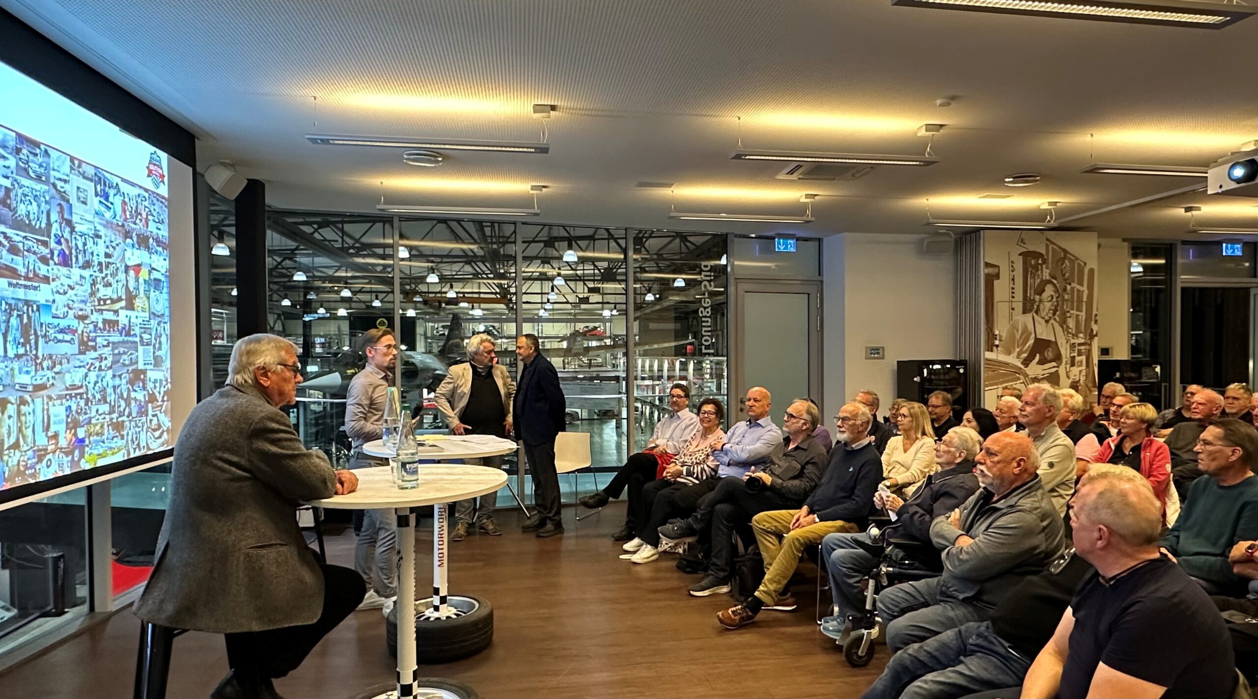 Am 30. Oktober 2025 folgten knapp 100 Gäste der Einladung des SOLITUDE REVIVAL e.V., in der MOTORWORLD Region Stuttgart auf dem denkmalgeschützten Gelände des ehemaligen Landesflughafens von Württemberg, den mit Spannung erwarteten Erzählungen des Motorsport-Visionärs Jochen Neerpasch zu lauschen.